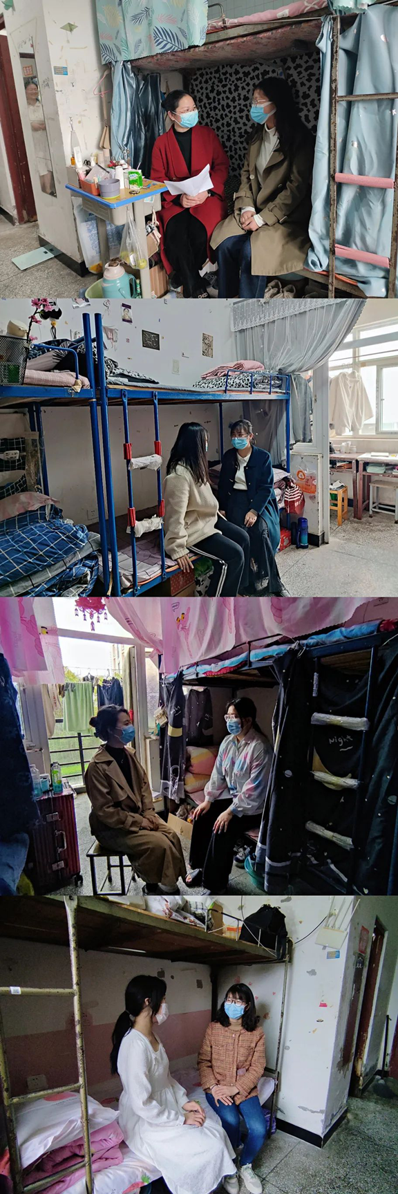 院领导、辅导员每天深入班级、寝室走访慰问学生。充分了解学生疫情期间在校学习和生活情况。走访过程中,耐心叮嘱同学们加强自我防护,养成良好个人卫生习惯,注意用电安全,勤通风、勤消毒,同时提醒同学们要调整心态,认真学习,保持规律的生活作息。