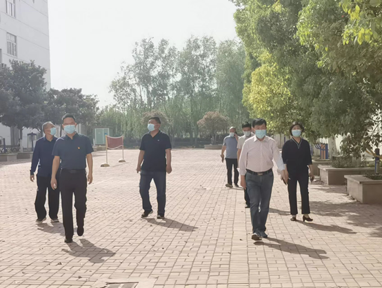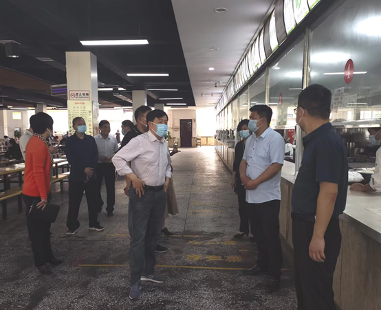 刘士欣书记一行首先查看了学生餐厅、校园超市、体育场、学生公寓等场所,每到一处刘书记看得认真,问得详细,全面了解校园在疫情时期,封闭管理期间,学生学习、生活及教师授课情况。