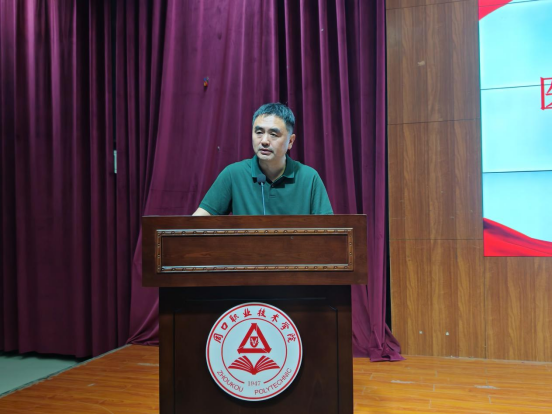 在演讲中,王自美深情回顾了在校期间受国家资助的温暖经历,讲述了这些帮助如何支撑自己跨越困难、追逐梦想的求学岁月。她从医疗影像行业基层起步,历经品牌创立、市场拓展至政策转型,始终秉持着母校教诲,以坚韧的毅力与创新的思维突破困境。她结合一张张图片,用亲身经历激励在场学子要不畏艰难、努力拼搏。并真挚地说:“是国家与学校的关爱与资助,让我有了改变命运的机会,我希望将这份温暖传递下去,鼓励更多同学勇敢追梦。”
