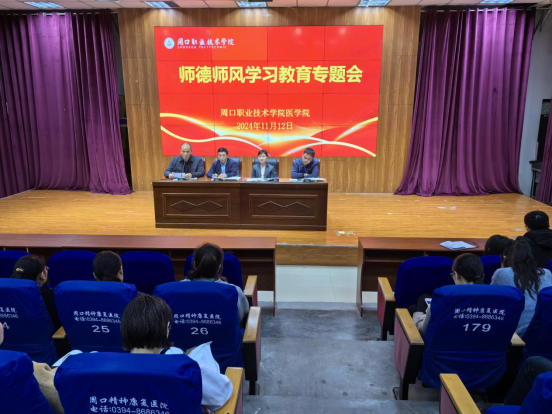 会上,副院长郭瑞带领大家学习新时代教师职业行为十项准则,逐条分析了对应违反的十项准则相关内容。并强调,老师们一定要以十项准则作为约束自己行为的标准,要时刻保持清醒的头脑,切勿因一时冲动酿成大错。