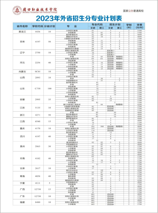 2023年分专业招生计划和代码表
